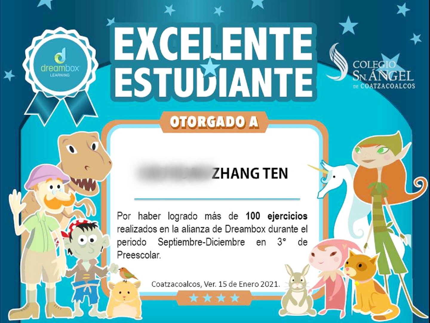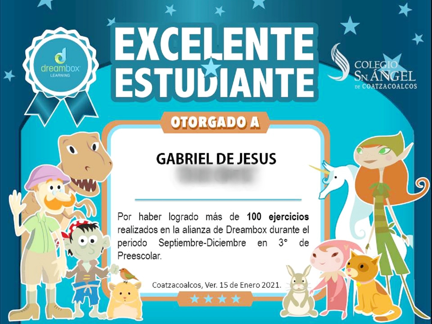 RECONOCIMIENTO DREAMBOX DE ALUMNOS DE PREESCOLAR EN COLEGIO SN ANGEL | Colegio Sn. Ángel de Coatzacoalcos