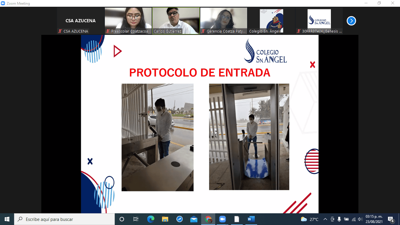 El dia 23 de agosto del 2021 se realizó una sesión informativa con el comité de Bioseguridad enfocado al regreso a clases, donde se comentó que el cuidado de todos inicia en casa, CSA también está presente en este cuidado con los protocolos establecidos para el acceso seguro.